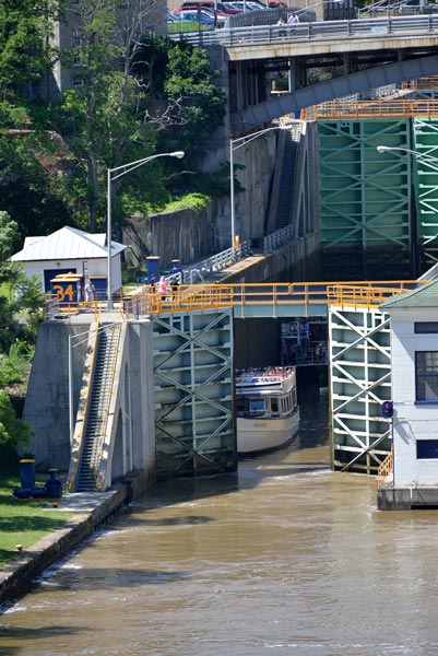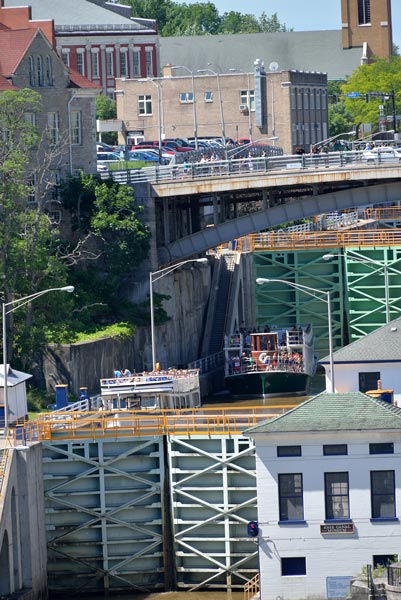 Your fun and informative cruise will take you past five of the original 1800's locks. Three million gallons of water will fill Locks 34 & 35, the only double set on the Erie Canal, and raise the boat 50 feet. You’ll pass under Lockport's "Upside Down Bridge," Lockport's "Big Bridge" (the widest bridge in the U.S. at 299 feet wide), through the "deep rock cut" and under lift bridges. The lively narration by the Coast Guard Licensed Captains is also accompanied by crowd-pleasing canal music, popular during the 1800's.
